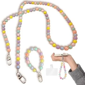 2Pcs Beaded Phone Lanyard – Colorful Wrist/Neck Strap for Women